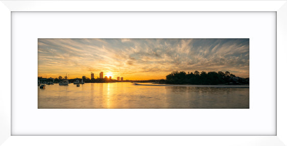 The golden tones of sunset are captured as a pano, but with a twist. By using a neutral density filter to extend the shutter speed, the foreground is calmed and reflects the drama in the sky.