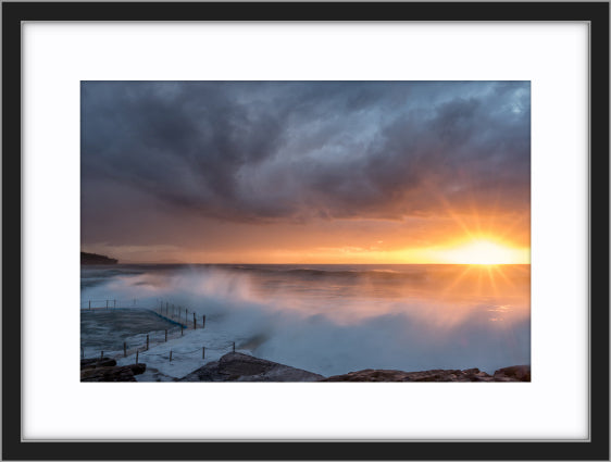A dramatic sunrise captured at South Curl Curl Rock Pool. Was it safe? Mostly. I had learnt my lesson from a previous shoot not to walk out along the front of the rock pool! I was less adventurous this time, especially given the bigger swell.